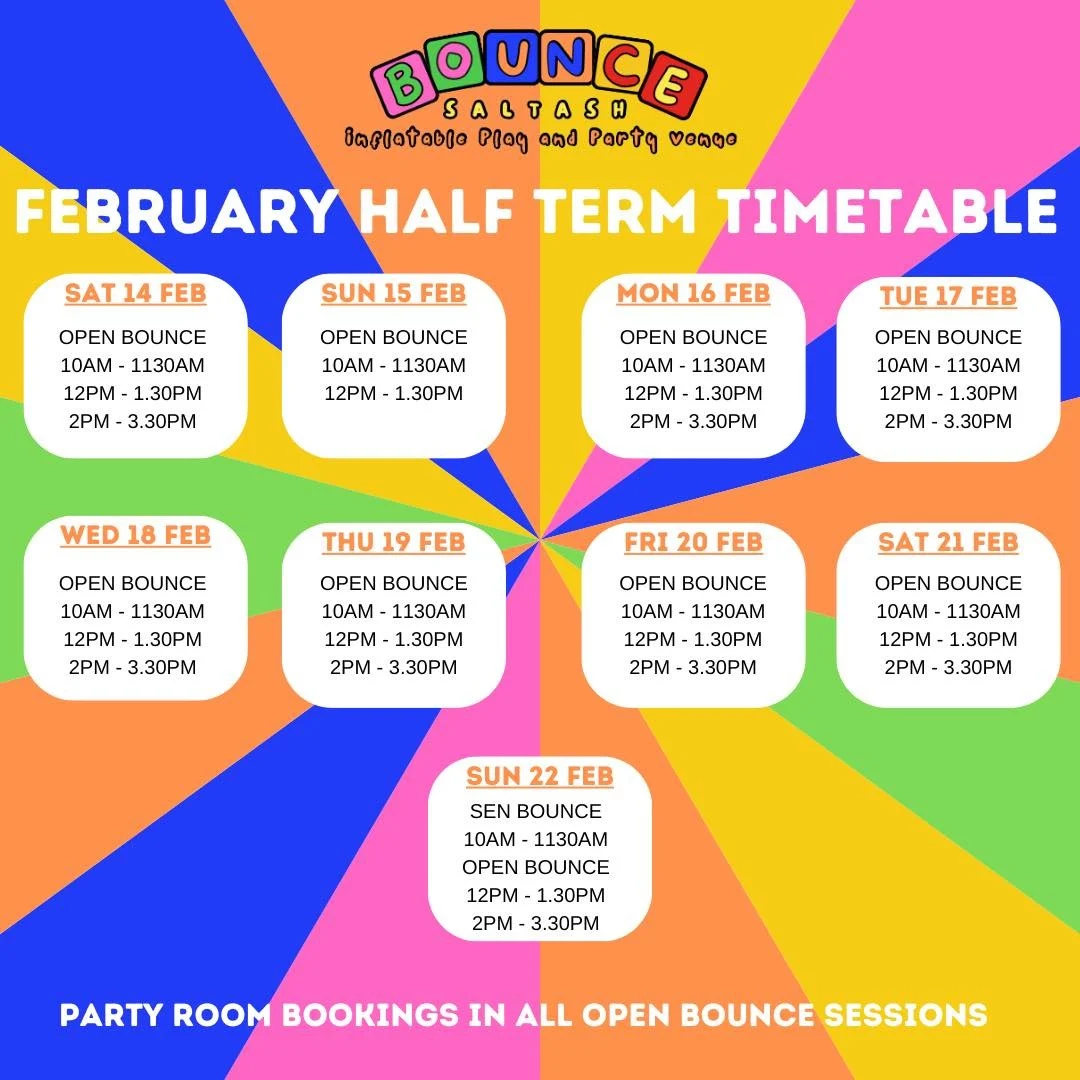 February Half Term Bookings - Sat 14th - Sun 22nd Feb