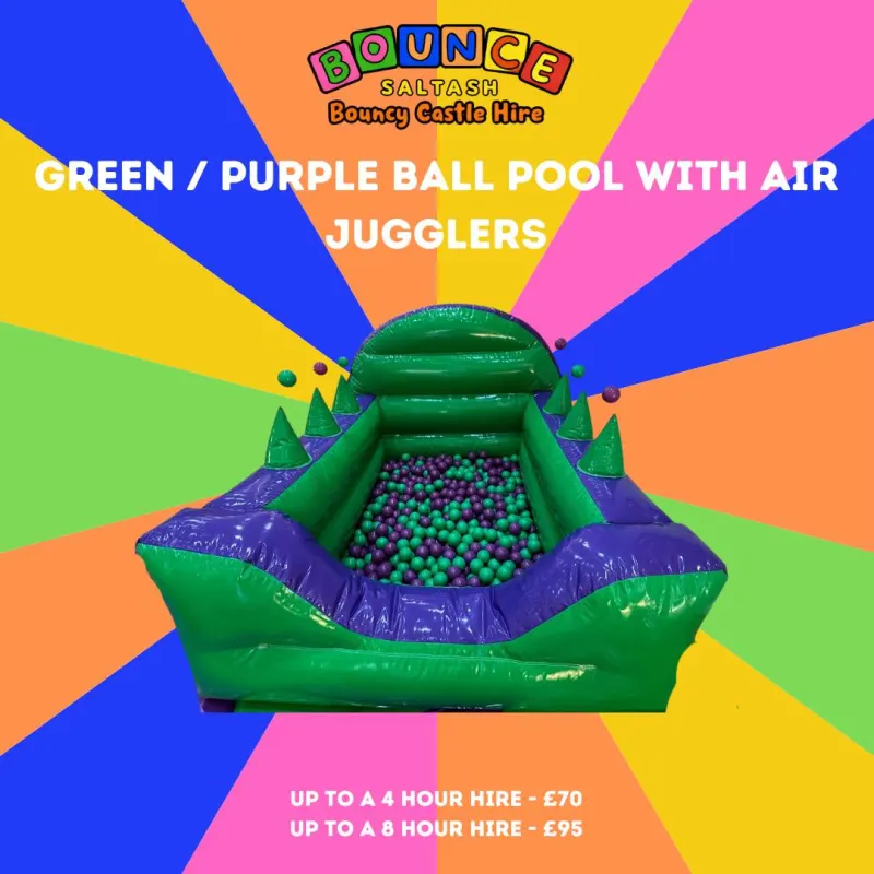 Book your Green & Purple Ball Pool with Air Jugglers today with Bounce Saltash Inflatable Play and Party and give little ones a magical play experience!